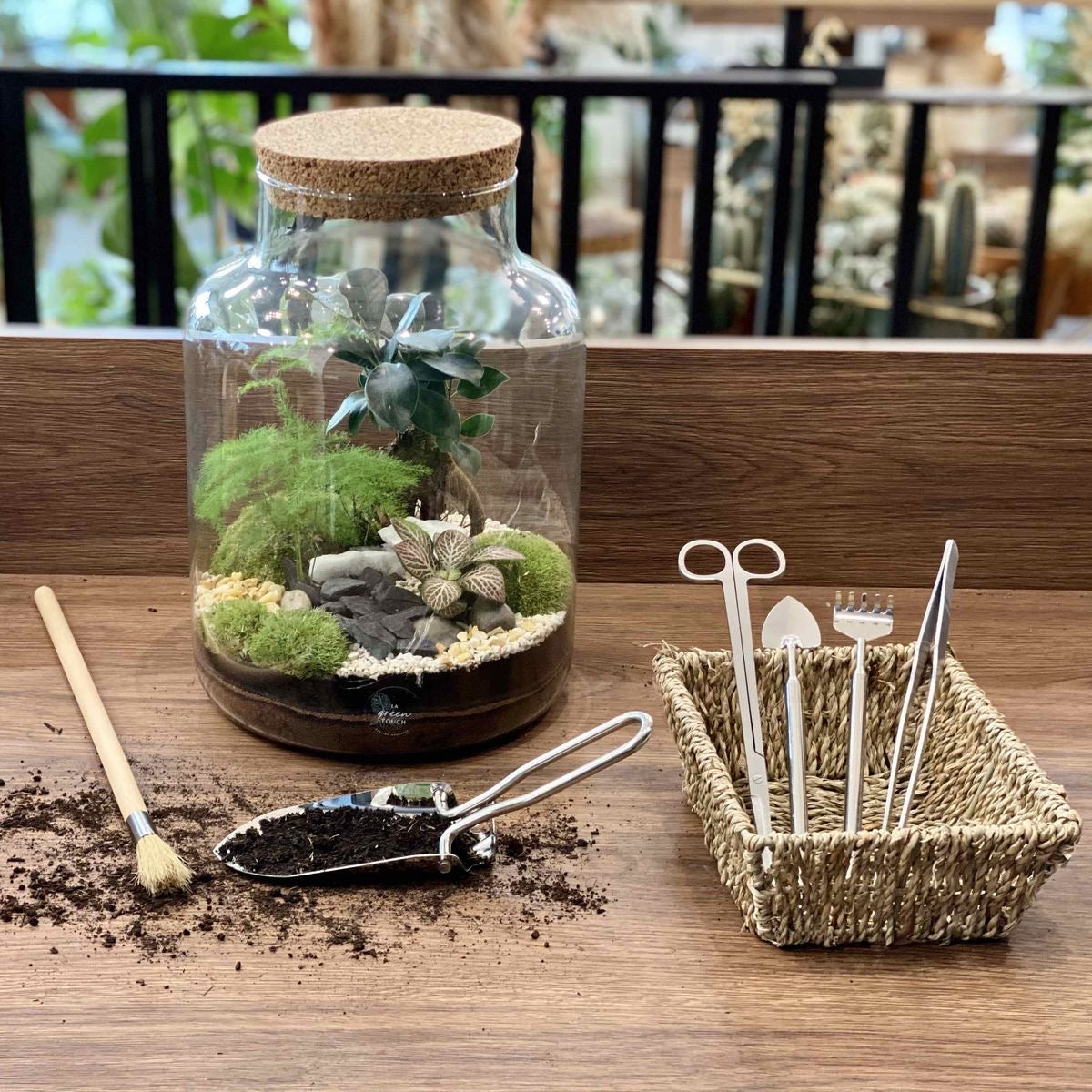 Nous offrons une sélection d’outils essentiels pour la création et l’entretien de vos terrariums : lampes horticoles, pinces de précision, ciseaux de taille et vaporisateurs fins. Pensés pour vous faciliter la vie, ces accessoires vous aident